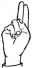 На ћирилици написано РАДЕ ГОДОЧЕВИЋ састоји се из 13 слова [?]. Исписано ћириличном једноручном азбуком за глувонеме: